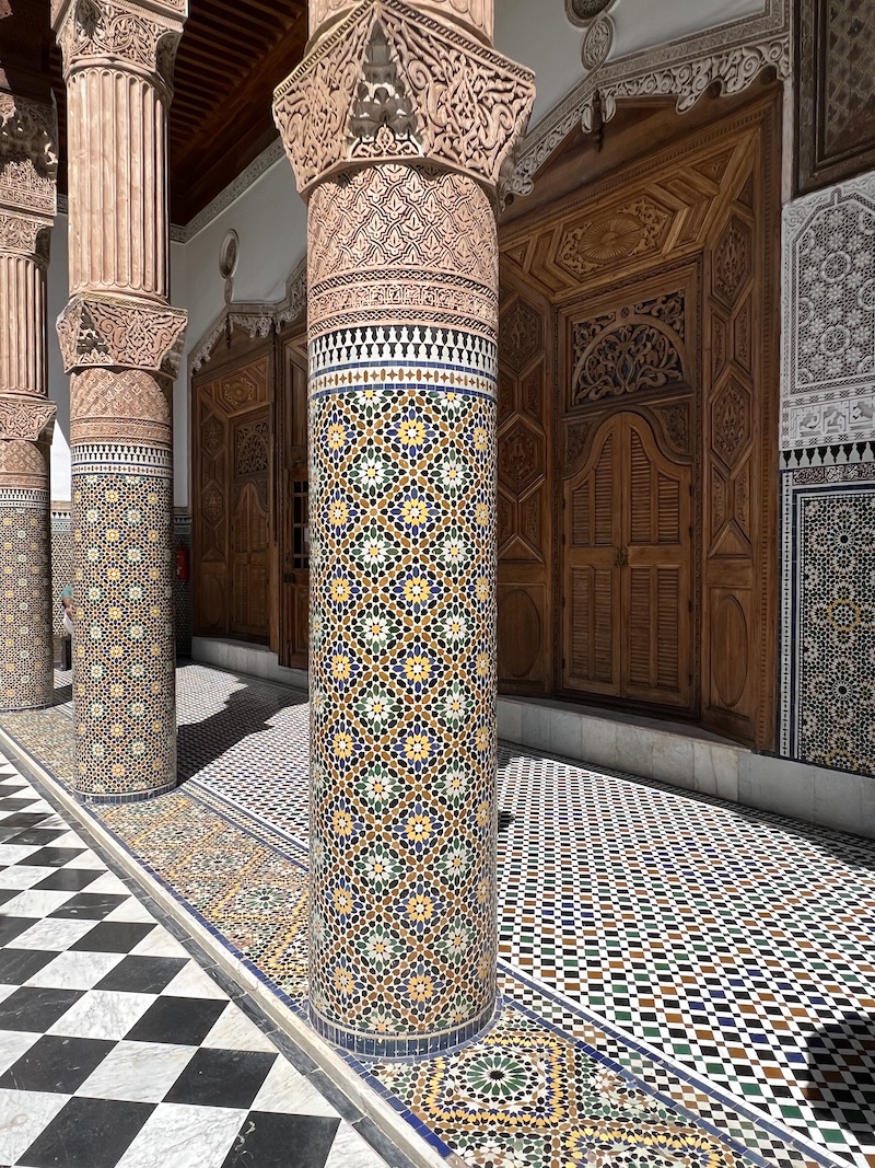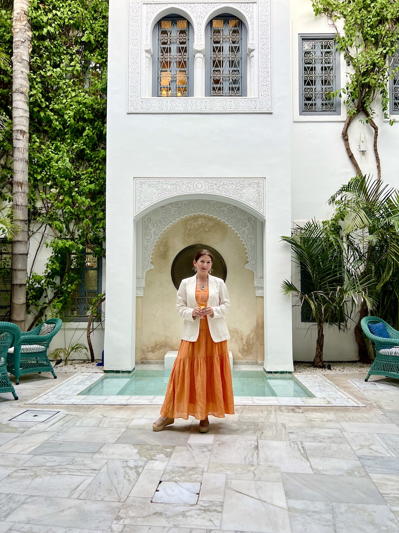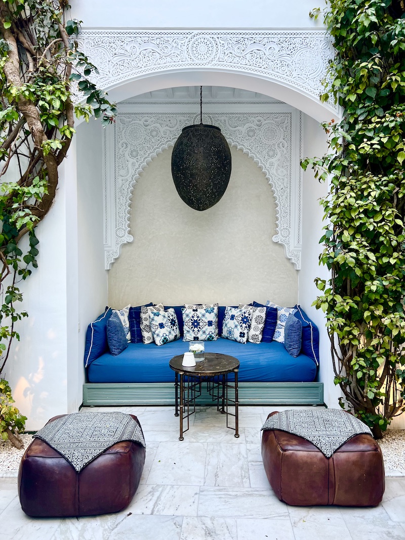 Another thing I loved about Riad Idra is the overall aesthetic. It blends traditional Moroccan architecture with understated luxury. Everything feels calm and refined from the beautifully intricate tilework to the carved and painted wood of the doors and windows. We loved sipping tea and having an evening glass of wine in the courtyard while listening to birds singing amongst a backdrop of cascading ivy. We also loved our visits to the spa, where we treated ourselves to two luxurious massages. It is truly a retreat from the city’s energy and the ideal place to unwind and experience the quieter, more intimate side of Marrakech.