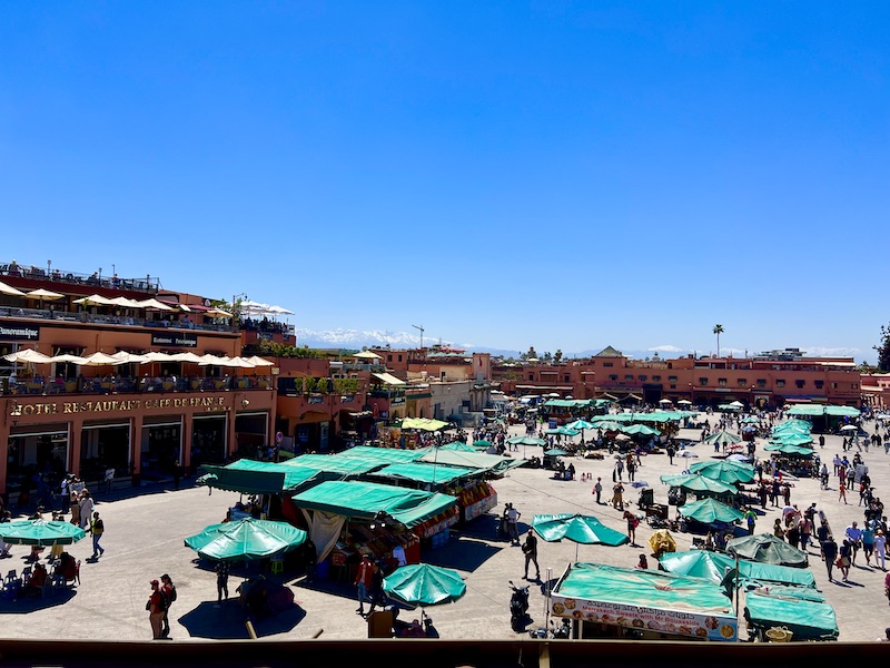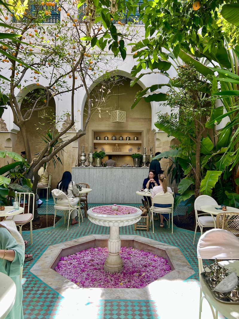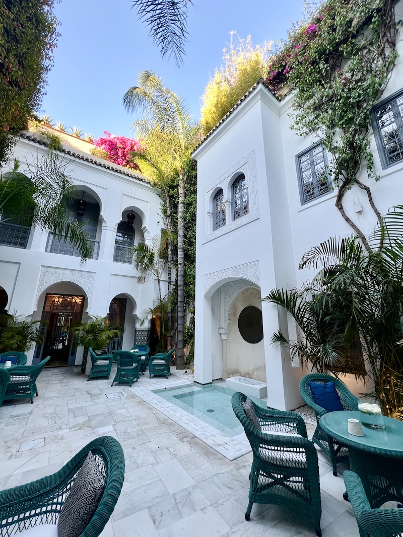 Marrakech is a city that captures all of your senses. The scent of orange blossom lingers in the air, the call to prayer softly echoes over the rooftops, and every step you take leads you to something beautifully unexpected. On our recent trip, we immersed ourselves in the rhythm of the city. Despite its organized chaos, Marrakech is not a place to be rushed through. We allowed ourselves to get lost in the labyrinth of souks and found peaceful respite in serene courtyards. We ventured beyond the city for a day in the Atlas Mountains, where we dined on traditional Moroccan dishes with a sweeping view of the snowcapped landscape (truly a “pinch me” travel moment). We wandered through the vivid colorscape of Jardin Majorelle and treated our bodies to the slow healing of massage in our riad’s spa. This trip was the perfect balance of adventure and relaxed indulgence. Here is my Eat + Stay + Play travel guide to Marrakech – everything we ate, where we stayed, and how we spent our time.