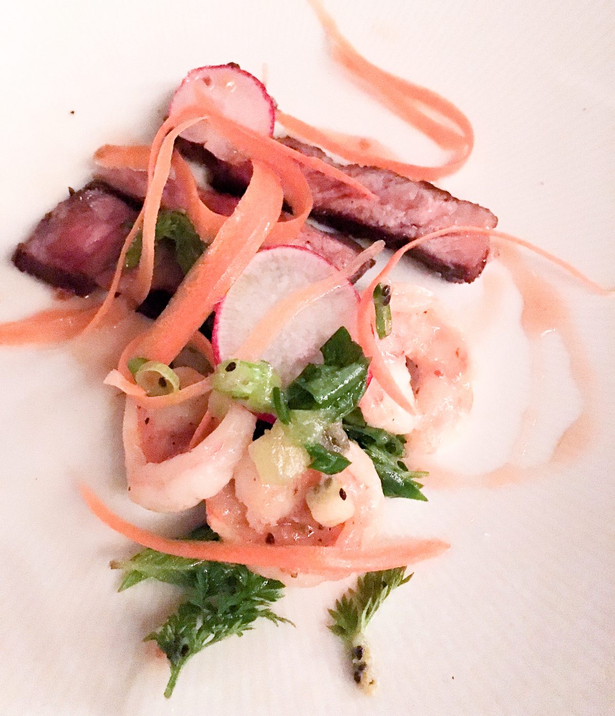 An amuse bouche of rabbit taco (oddly one of my favorites of the evenings) kicked off our five course meal by Chef Andrew Rodriguez. A small pairing of greens lead the way to a beef, duck, and chicken course culminating in dessert. For each course the chef addressed the room, describing what we were about to eat and his inspiration for creating it.